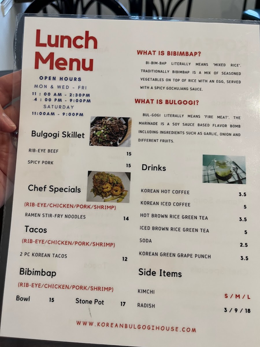 Our made-in-house sweet & sour Korean pickled radish. Served on top of our bibimbaps, Korean tacos and a side comes with our rice plate dinner entrees.